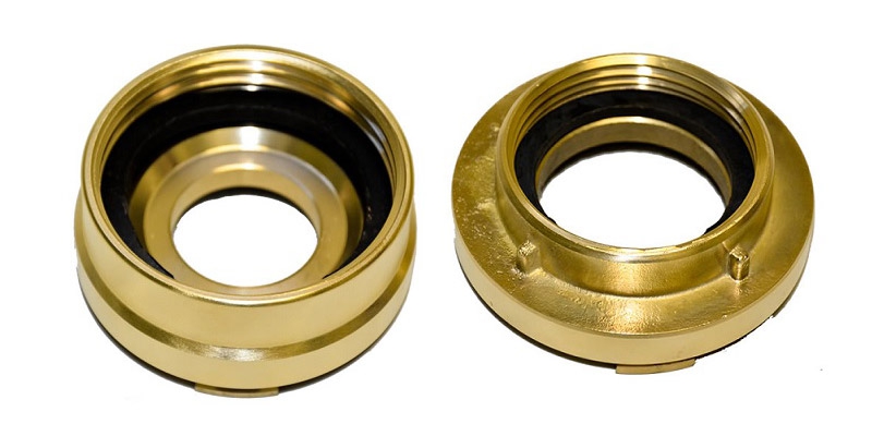 Engate Rápido 1.1/2’’ (Storz) X Rosca 2.1/2’’ Interna NBR 5 Fios por Polegada. - Peso: 0,6 Kg. - Material: Latão Fundido NBR 6941 - Acabamento: Usinado